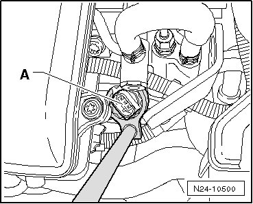 - Disconnect the connector from the fuel pressure sensor - A - and remove the sensor with an open end wrench.