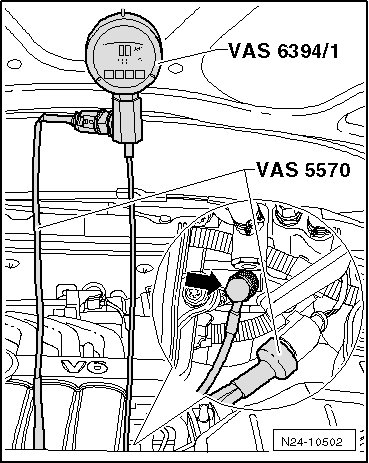 • If the (VAS 6394/1) does not display 0 bar, set it back to zero, refer to the operating instructions.