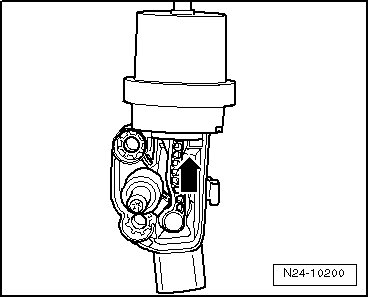 - Operate the (VAS 6213) several times. Operating plunger must move in the - direction of the arrow -.