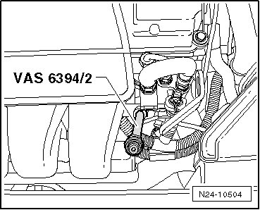 - Connect the (VAS 6213) to the intake manifold connection.