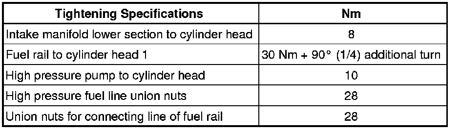 • Evenly tighten the fuel rail to the cylinder head with new bolts working from the inside to the outside.