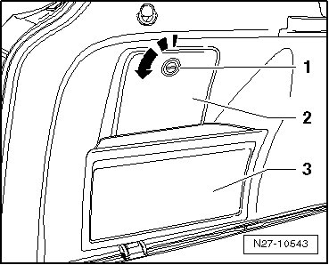 - Disengage locking mechanism - 1 - and remove trim - 2 - and storage compartment - 3 -.