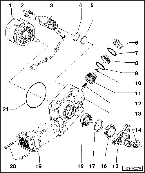 • Complete Haldex clutch, removing and installing. Refer to => [ Haldex Clutch Assembly Overview ] Haldex Clutch Assembly Overview.