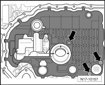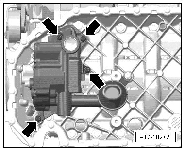 - Remove the lower oil pan section => [ Oil Pan Lower Section, Removing and Installing ] Oil Pan Lower Section, Removing and Installing.