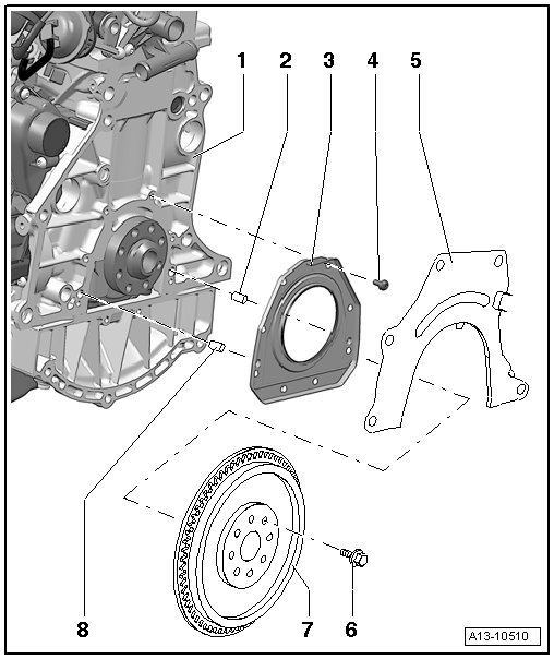 • Dual-mass flywheel, removing and installing => [ Dual Mass Flywheel, Removing and Installing ] Dual Mass Flywheel, Removing and Installing