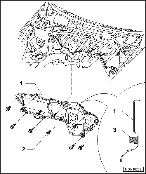 - After unscrewing of bolts - 2 -, cut through adhesive bead using workshop tools.