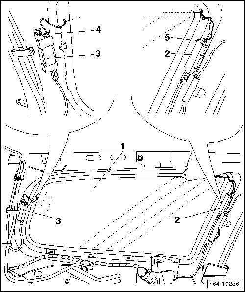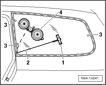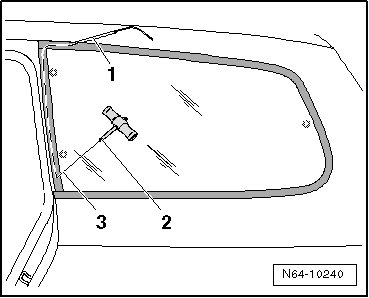 - Pull cutting cord - 1 - through adhesive sealant at place shown in picture into vehicle interior at lower area of rear window using (V.A.G 1474/2) from (V.A.G 1474 A).