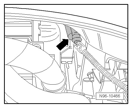 - Disconnect harness connector in the vicinity of the right headlamp - arrow -.