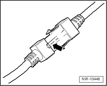 - Carefully pull monitor in - direction of arrow A - with hook (VAS 3370) until plastic pins disengage.
