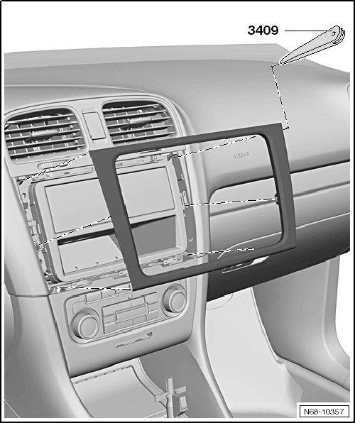 - Pry the trim out its mounts in the center of the instrument panel using the trim removal wedge (3409)