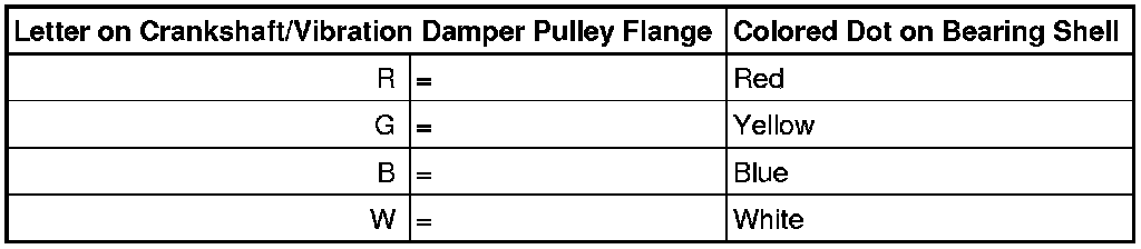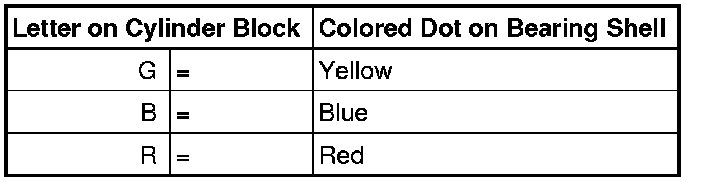 The letters marked on the lower sealing surface of the cylinder block identify which bearing thickness must be installed in which location.