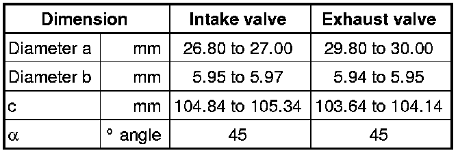Intake and exhaust valves must not be refaced by grinding. Only lapping is permitted.