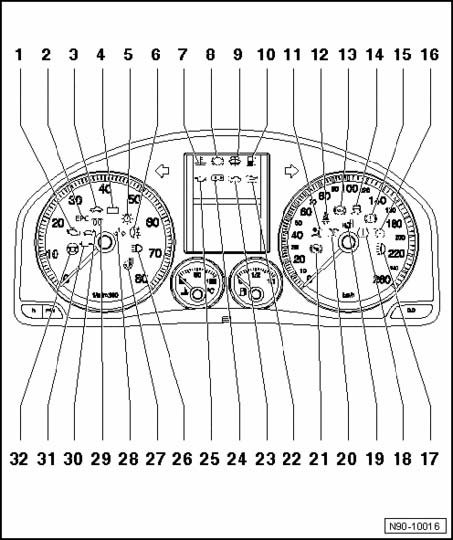 Different instrument clusters are used, depending on vehicle equipment. Therefore, the arrangement of the control lamps may deviate from the illustration.