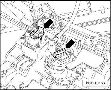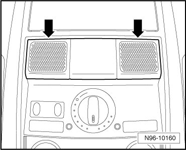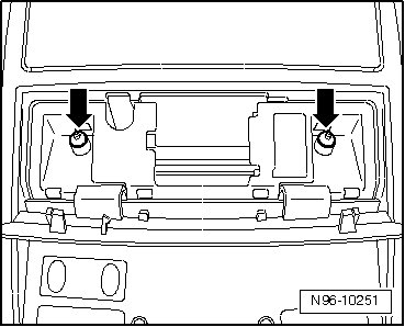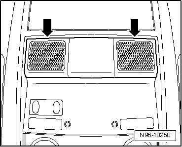 - Carefully pry panel out of interior light - arrows - using trim removal wedge (VAS 3409) or a screwdriver.