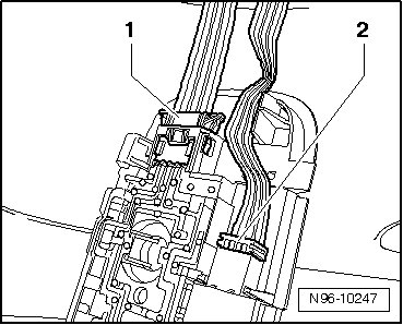 - Disengage harness connectors - 1 - and - 2 - and disconnect both harness connectors.