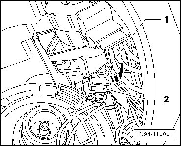 - Disconnect connector - 2 - and remove adjusting motor - 1 -.