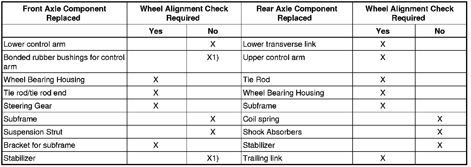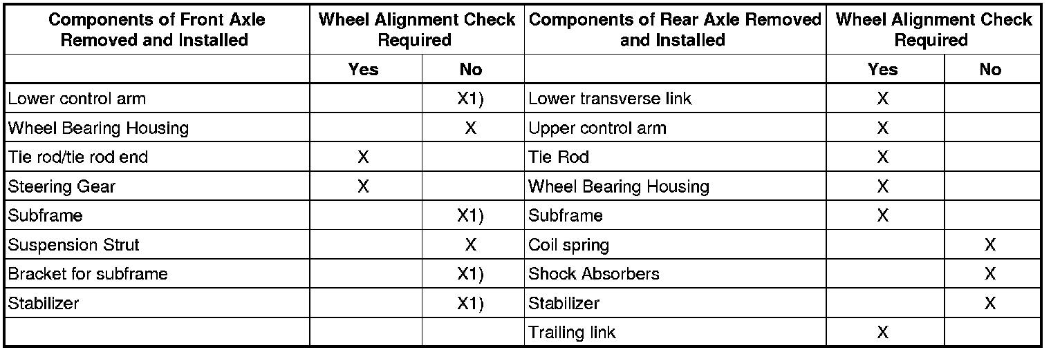 Wheel alignment checks must always include both the front and rear axles.