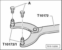 - Remove adapter T10172/1 and install bolts - A - M8x16.