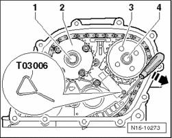 ^ Make sure that timing chain lies correctly in gliding and tensioning tracks.