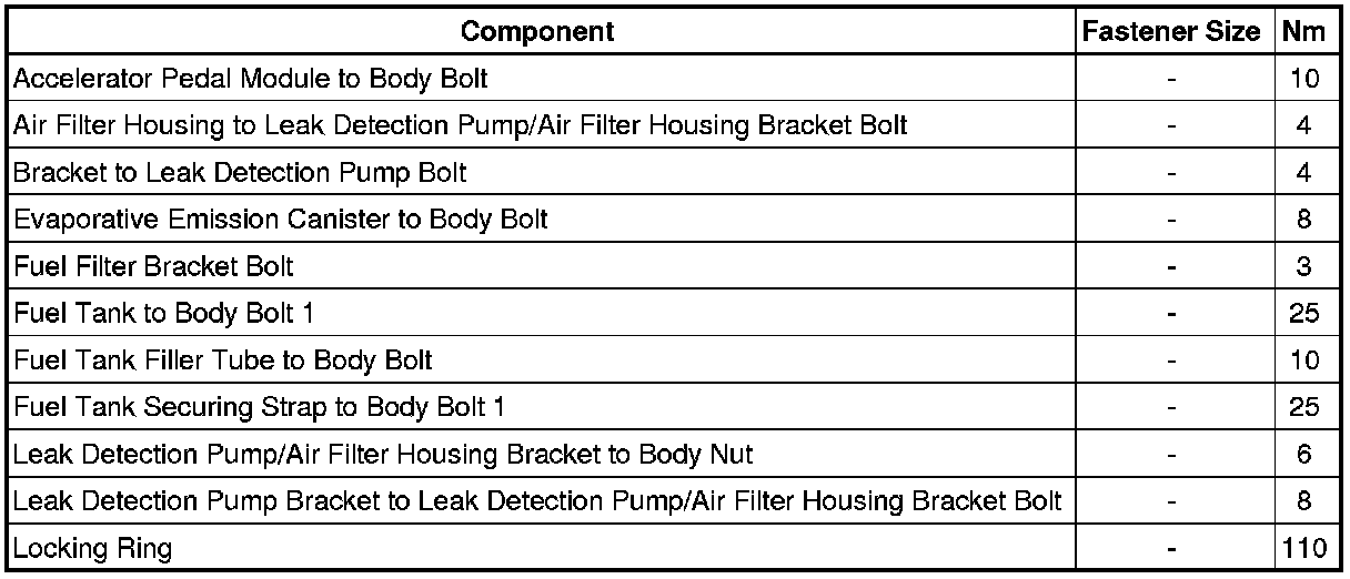 Fuel Supply - Fastener Tightening Specifications