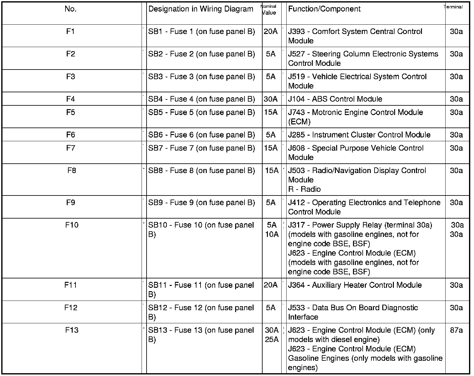 Fuse Arrangements Electronics Box Low, from May 2005