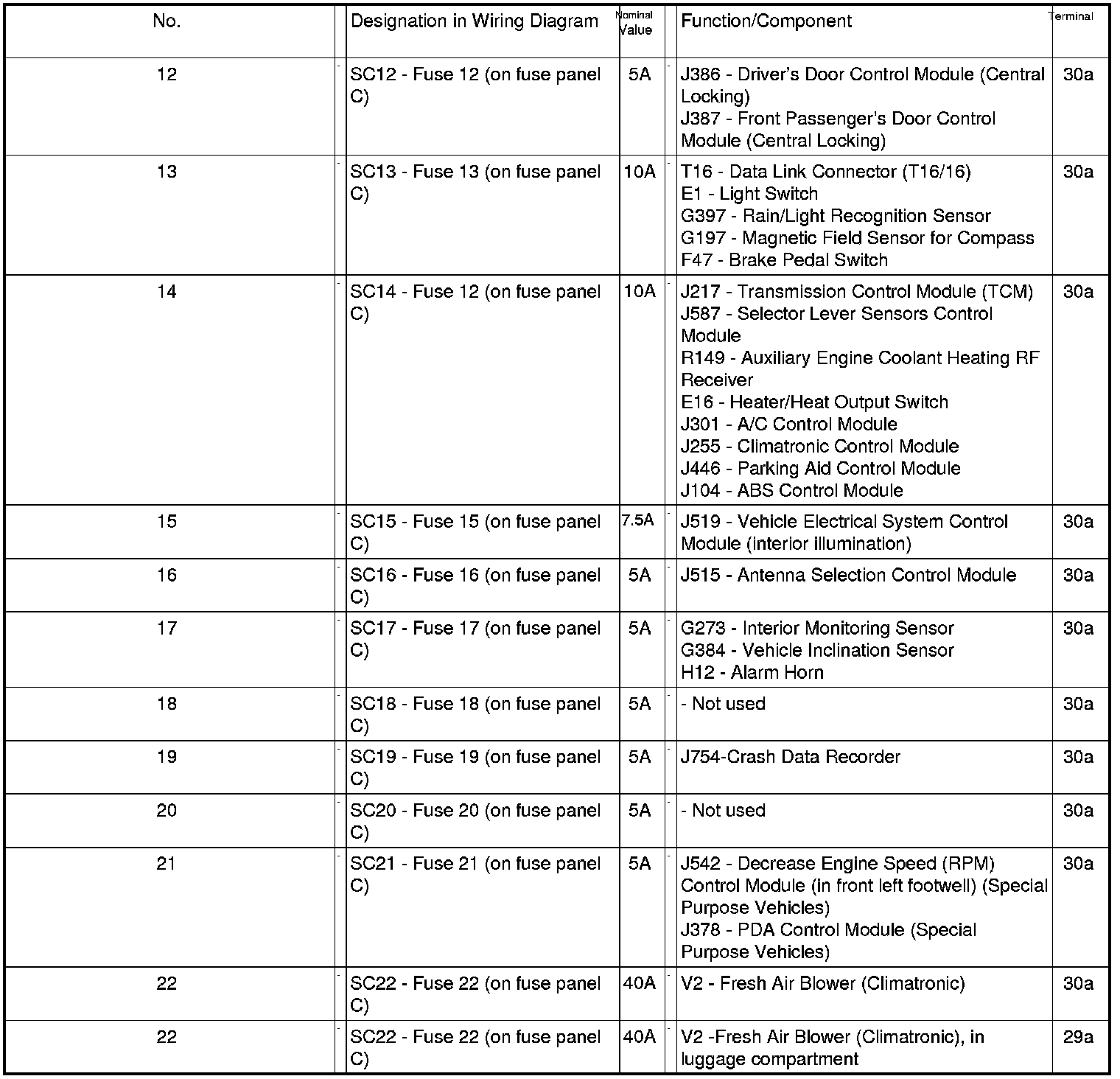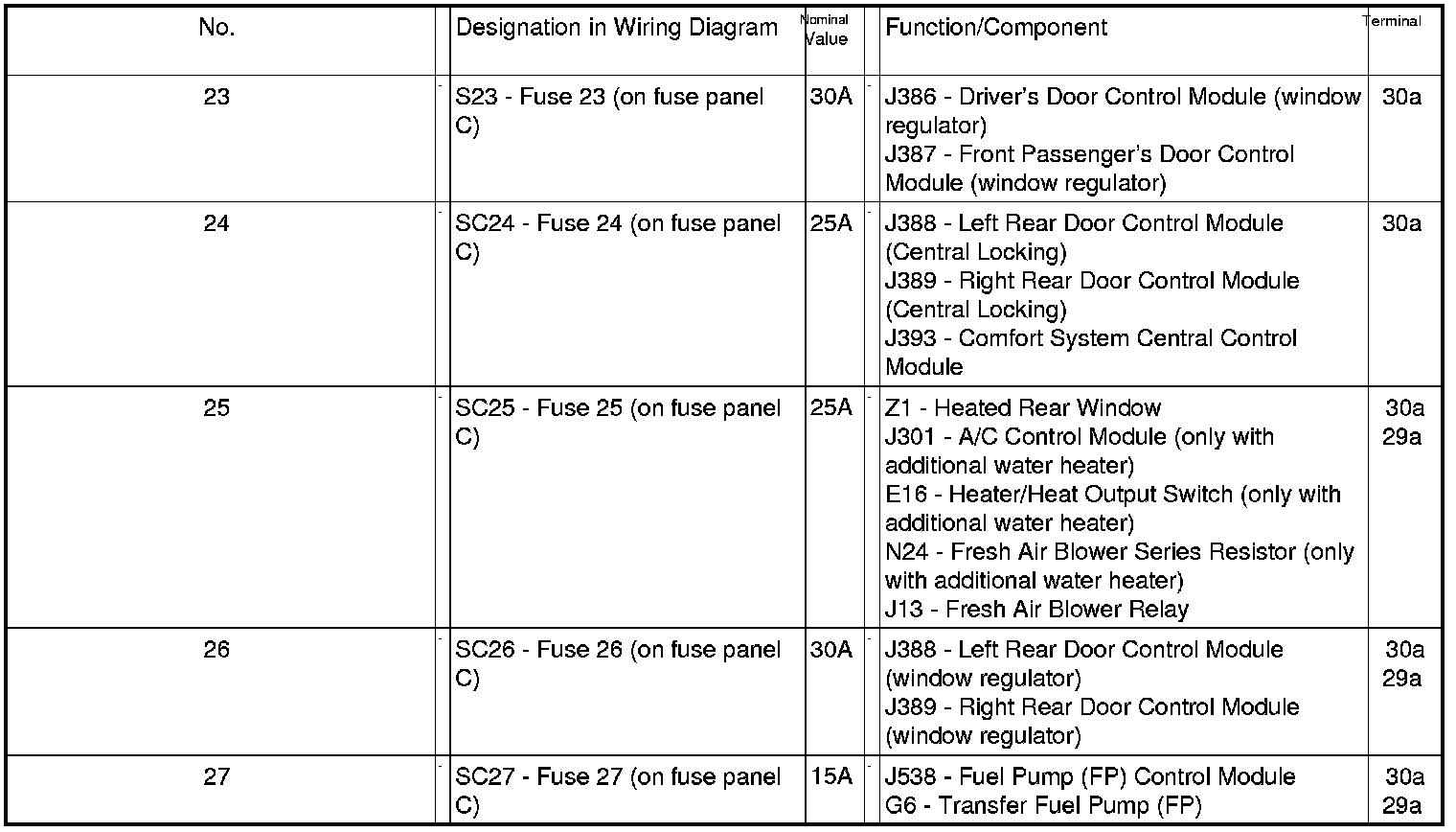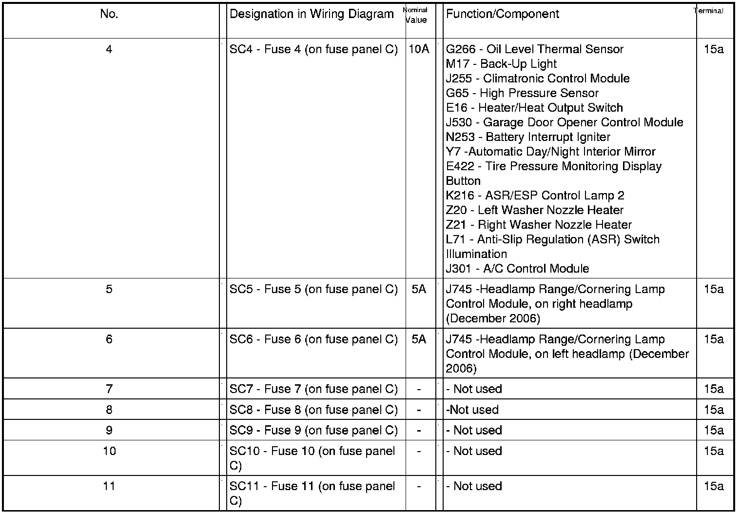 Fuse Arrangements Electronics Box High, From May 2007