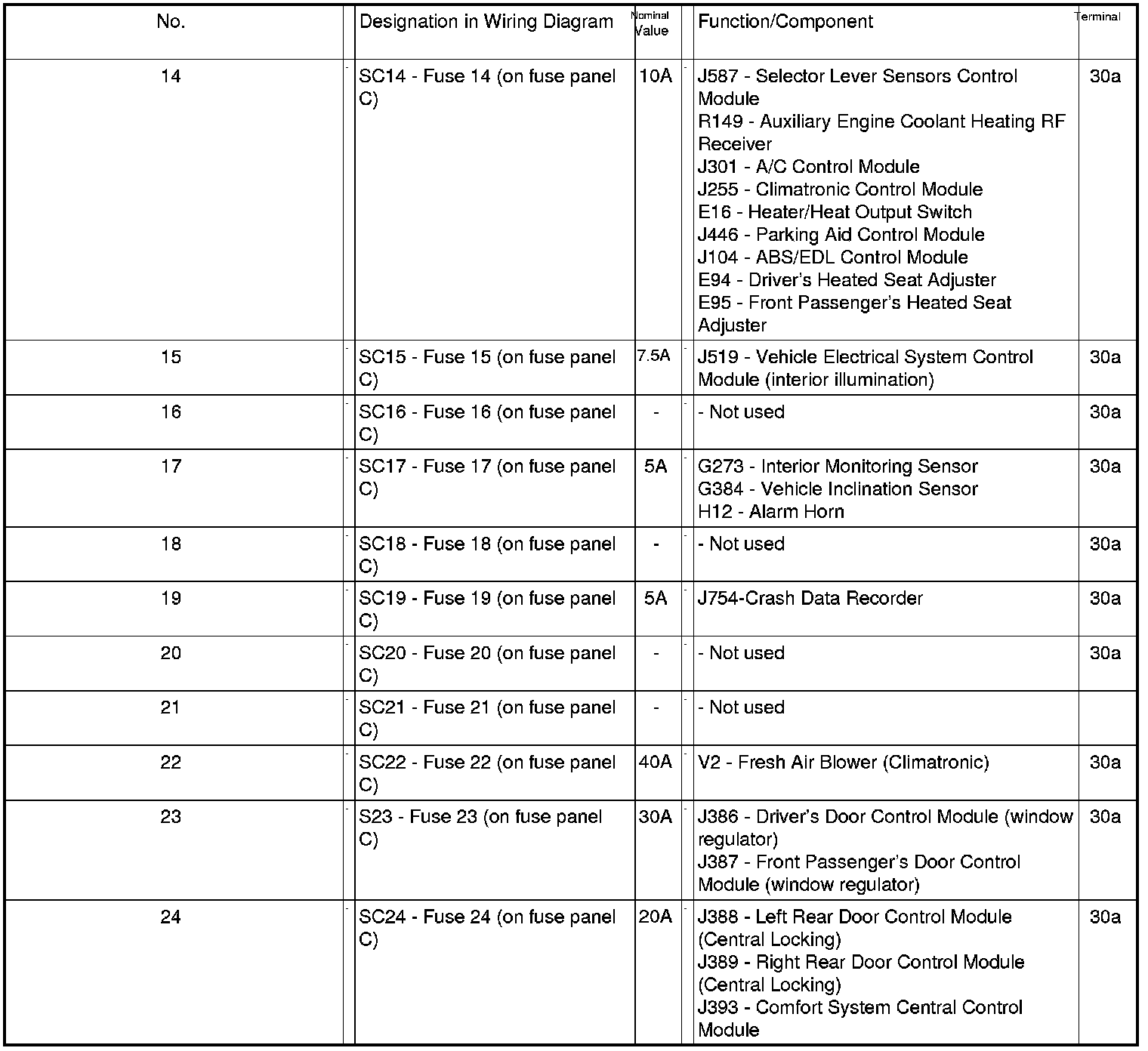 Fuses in Interior