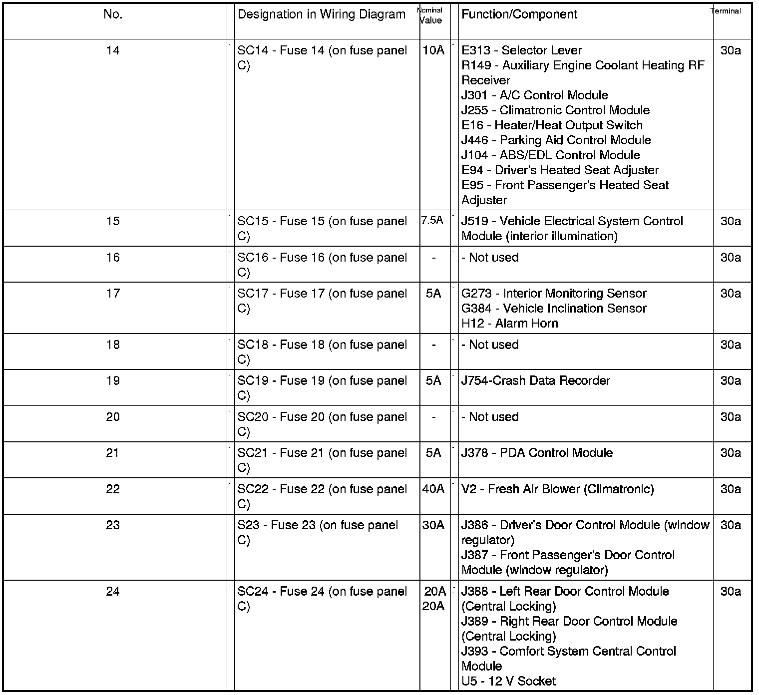 Fuses in Interior