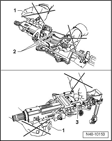 • Grasp steering column at upper steering column tube and in area of upper universal joint.