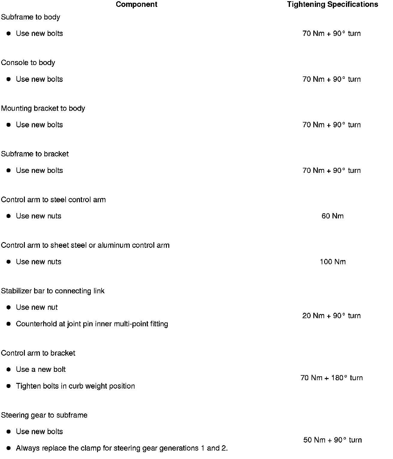 - Tighten control arm to bolt in curb weight position - 10 -.