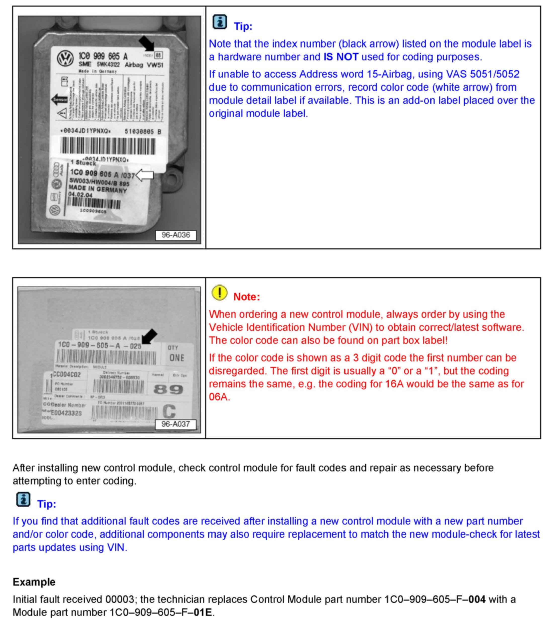 Module, Airbag, Color Code Identification and Coding