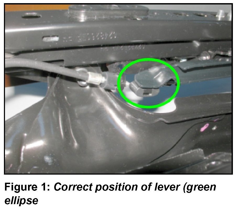 - Using a suitable prying tool, carefully bring the adjustment lever (see figure 5, No. 3) (see figure 5, No. 2) in correct position (illustration 1 green ellipse)