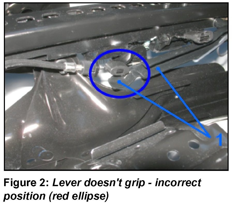In such a case (illustration 2, red ellipse) the lengthwise unlocking doesn't operate any longer and the seat cannot be moved.