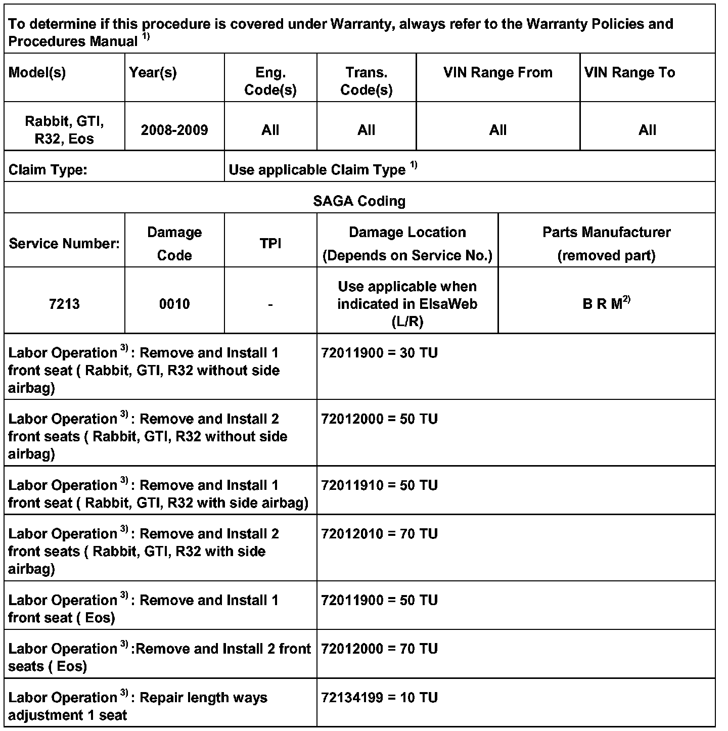 - Install seat(s), see Repair Manual Group 72 in ElsaWeb.