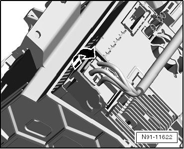 - Unlock the antenna connections - arrows - and disconnect the connectors.