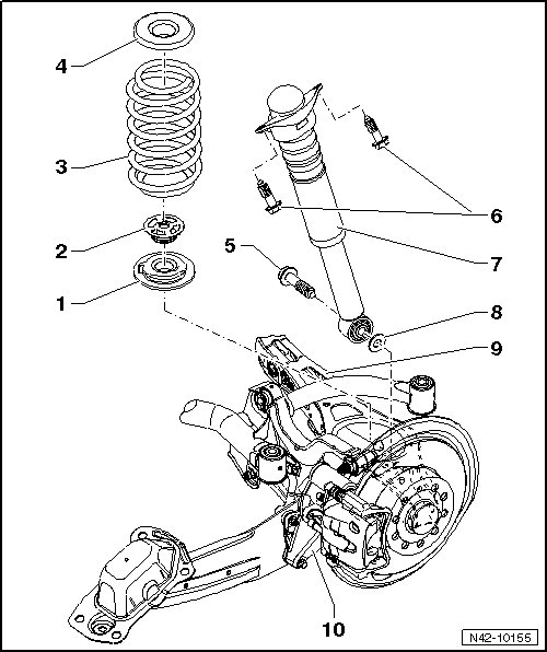 • Removing and installing, refer to => [ Lower Transverse Link, through MY 2010 ] Lower Transverse Link, through MY 2010.