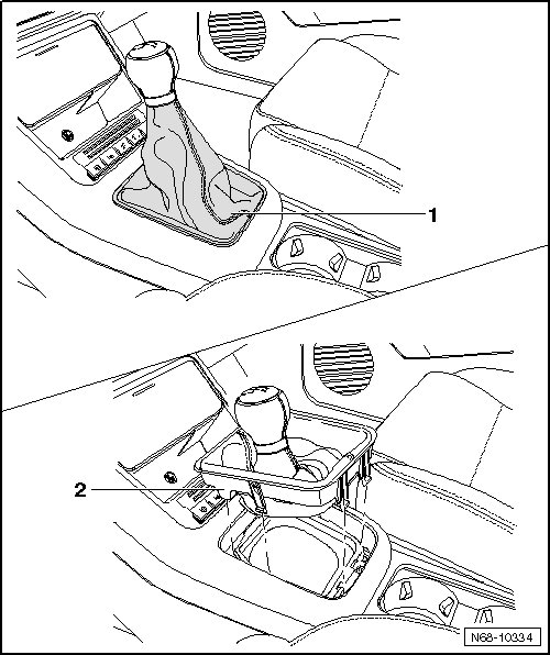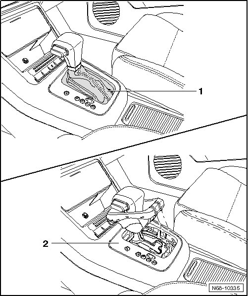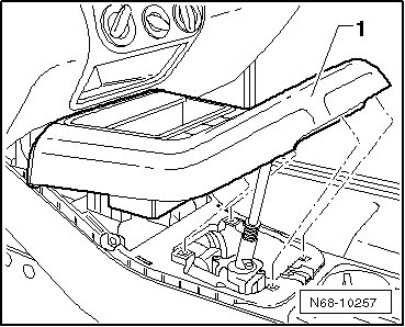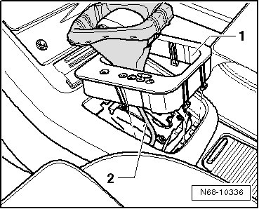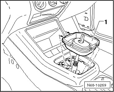 - Swivel the cover - 1 - upward out of the mounts in the center console and disconnect, depending on the vehicle equipment lever, the harness connectors.