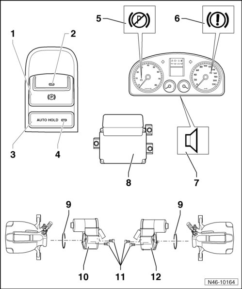 8 Electro-Mechanical Parking Brake Control Module (J540) and ESP Sensor Unit (G419)