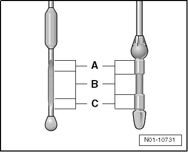 - When oil level is below marking - C -, top off with oil to marking - A -. Oil specification refer to =>