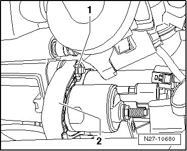 - Release and disconnect the connector - 1 - and loosen the spring clamp - 2 - using (VAS 5024A).