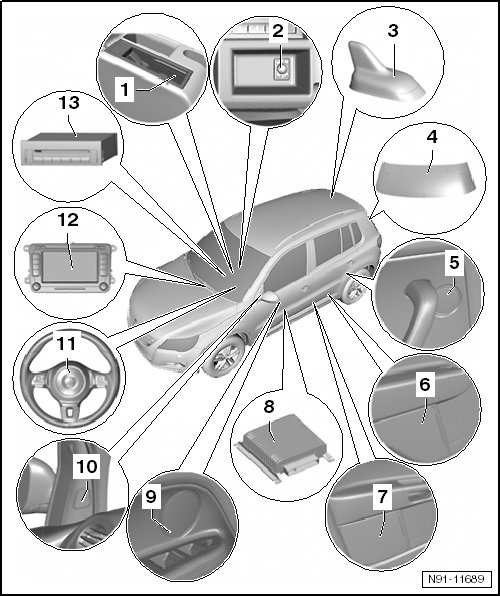 • Removing and installing, refer to => [ Radios and Radio Navigation Systems ] Service and Repair.