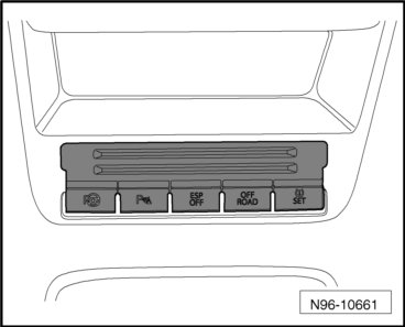 • All buttons in the center console storage compartment are removed and installed the same way. The procedure is described for just one switch.