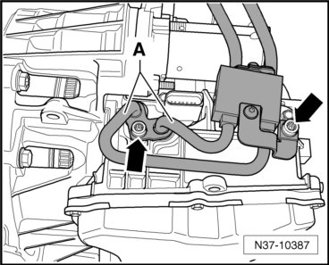 - Remove the bolts - arrows - and then remove the transmission fluid lines - A - from the transmission.