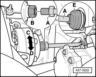 • After installing the driveshaft - A -, check the boot - E - installation position.