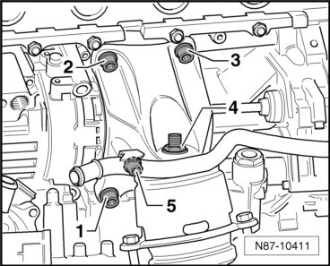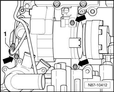 - Remove three bolts - arrows - tightening torque 25 Nm.