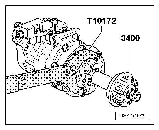 - Lock A/C compressor with Counterhold (T10172) and Adapter (T10172/1) and tighten take-up with free-running hub.