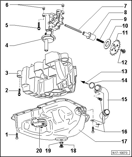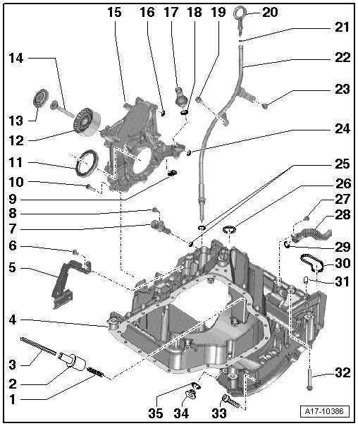 17 - Oil Pressure Switch -F22- /Oil Pressure Switch -F1- => [ Upper Oil Pan Assembly Overview ] See Image Below.