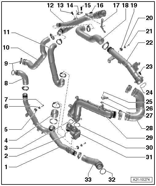 10 Charge Air Pressure Sensor -G31- with Intake Air Temperature (IAT) Sensor -G42- => [ Charge Air Cooler Hoses/Pipes Assembly Overview ] See Image Below.