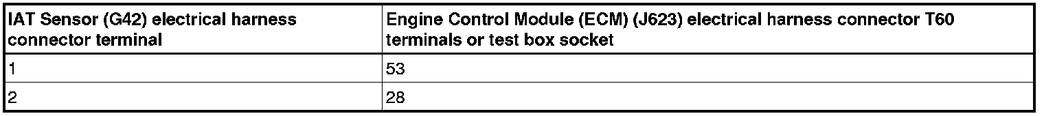 - Using a multimeter, check the IAT Sensor (G42) terminals 1 to 2 for resistance.