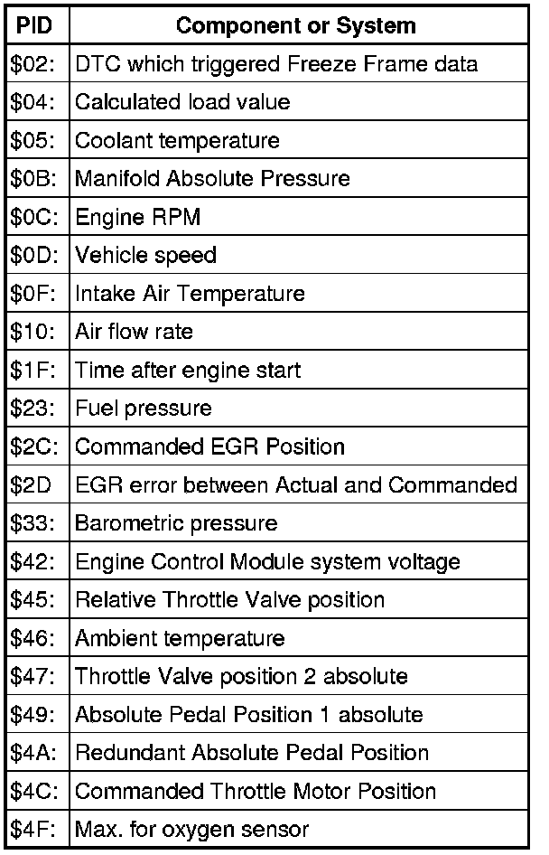 • Depending on scan tool and protocol used, the information in diagnostic mode 02 may be referred to by different names such as Test-ID, Hex-ID, Component-ID, or On-Board Diagnostic Monitor Identifier (OBDMID).